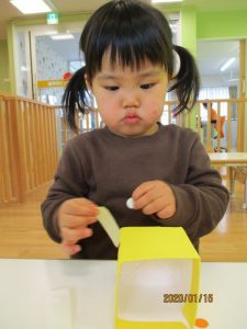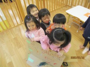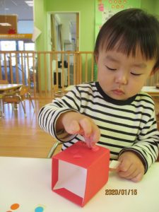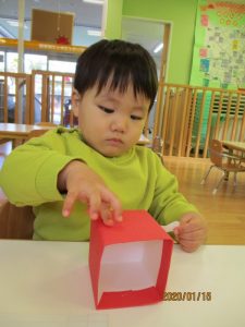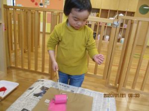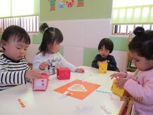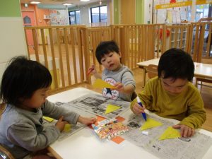 さて、保育園では今2月の節分会に向けて各年齢ごとに色々な制作活動を行っています。