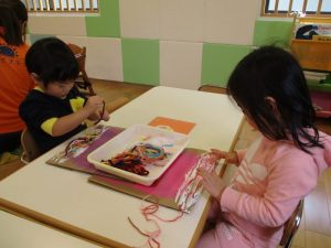 担任が子ども達の発達段階を見て製作の内容を考えて、楽しく活動を進めてくださっています。