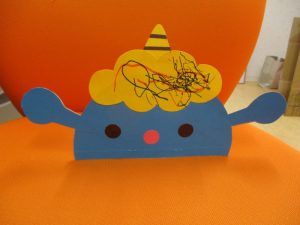 今日はそこに毛糸を髪の毛に見立てて、ボンドを付けて貼り付け