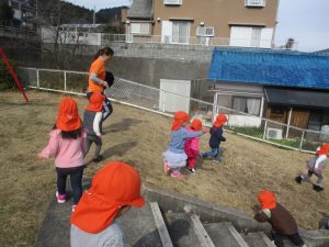 広場を走ったり階段の上り下りをしたりと、大忙しの子どもたち!!