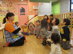 思わずロープと同じように自分の首をピーンと伸ばす子ども達(≧▽≦)