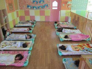 サンライズキッズ保育園では、お昼寝時にうつぶせ寝にならないよう