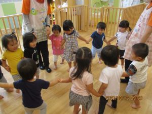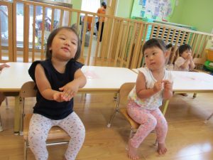 季節の歌や子ども達のリクエストを聞きながら手遊びをしたり、
