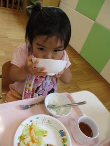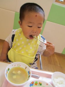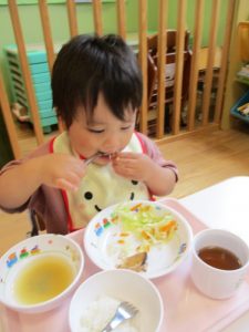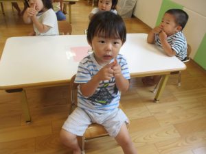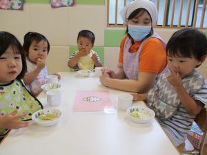 9時になると子ども達の登園が完了し、楽しみにしているAMのおやつの時間です(≧▽≦)