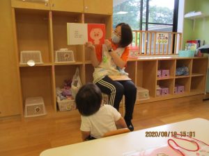 絵本の内容により子どもたちの反応もそれぞれで、今の季節にぴったりの『おばきゃ~』の絵本では