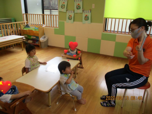 朝の会で2歳児さんが『○○ちゃんは?』と同じクラスのお友だちの名前をあげて