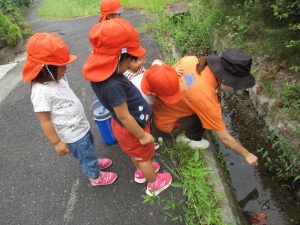 子ども達も一緒になって真似をして顔を上にあげていました![]()