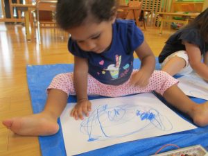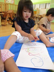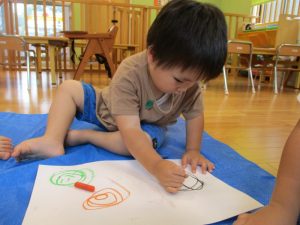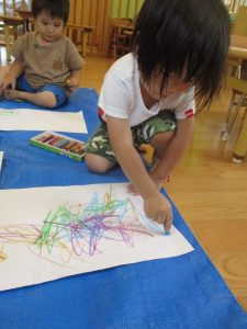 ?組さんがクレパスを使い白い紙に何やら描いていますよ![]()