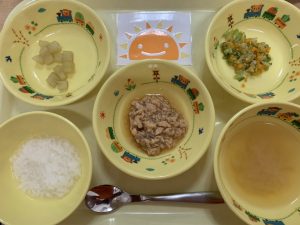 ご飯 味噌汁 鮭の照り焼き さつま芋の甘煮 野菜炒め