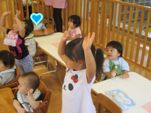 『ぱかっ』という言葉に合わせて一緒になって手を広げて