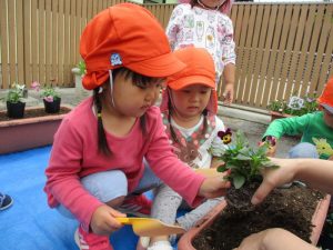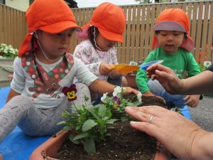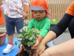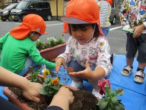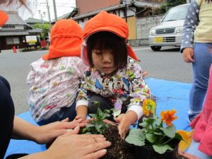 ?ぐみさんが、プランターに花を植えるお手伝いをしてくれました