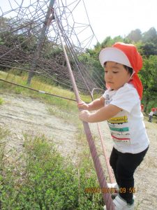 初めの頃は、2歳児さんが登っているのを下から見ていた子ども達も