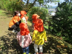 いつもは下の広場の所で遊んでいるのですが、今回?ぐみさんは長い階段を登り・・