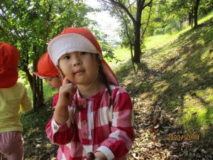 遊具で遊んだ後は、恒例のどんぐり拾いもしたよ?