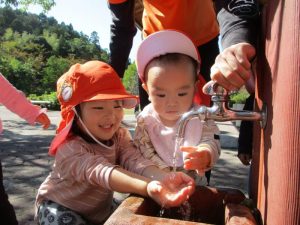 子どもたちの頬が暑さでほんのりと赤くなっていました![]()