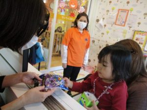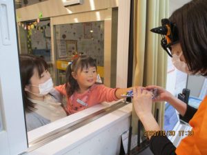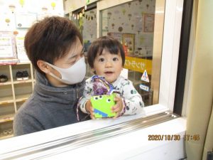 ハロウィン会の時に、帰る時にお家の人と一緒に園長先生がいる部屋の窓をトントンっと叩いて