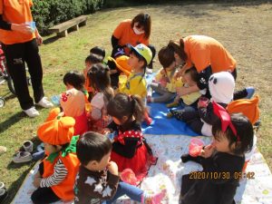 朝から仮装をして登園してきてくれた子どもたち