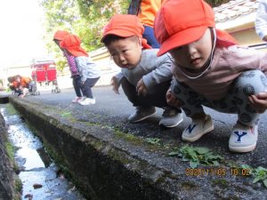 『みぞっこに何かいるかな~』と何やら探している子どもたち![]()