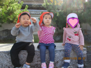 散歩から帰って来た時に?組さんは『えんちょうせんせい ただいま