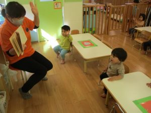 それでは今週1回目の絵本の読み聞かせの様子をお伝えします![]()