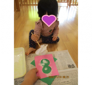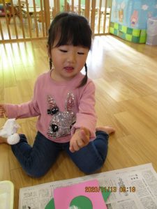 緑の画用紙が白に変化していく様子が面白かったのか、