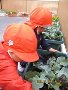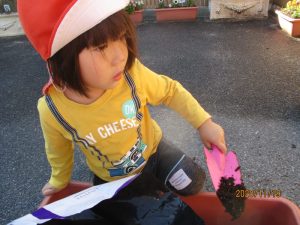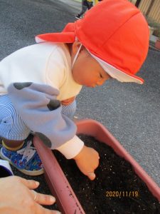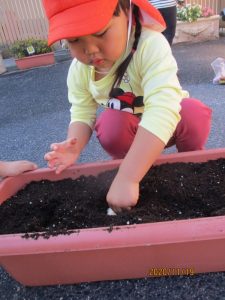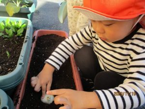 保育園では現在『ほうれん草』を育てていて、今回もう一種類野菜を育てる事にしました。