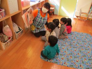 2歳児クラスも後半になり簡単な物語の絵本が楽しめるようにもなってきましたよ![]()