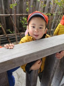 2歳児の部屋の柵越しから、えんちょうせんせい なにしてるの?一人の子が聞くと、