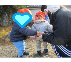 園周辺にお散歩に行った時も、大好きな先生と一緒に