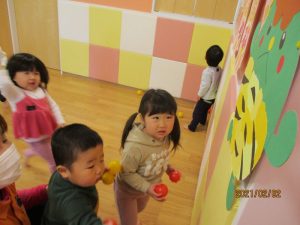 カラーボールを豆に見立てて元気いっぱいに