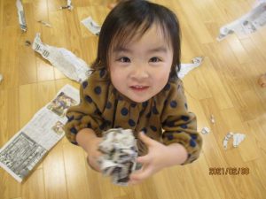 新聞で遊んだ時に、大きな豆を作ったよ