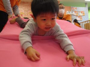 マットで作った坂を登るよ