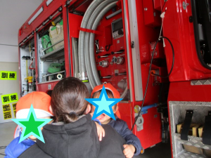 保育園から近くの消防署に消防車?を見に行きました