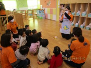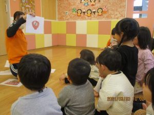 先ずは『ひな祭り』に因んだ絵本の読み聞かせを行いました。