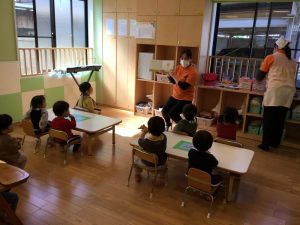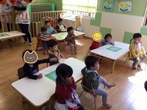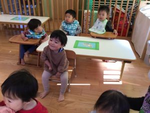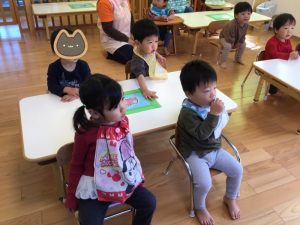 もも組さんは保育者のお膝に座ってゆっくりと絵本を楽しんでくださいましたよ✨