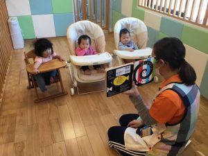 今週は0歳児、もも組さんの絵本の様子をお伝えしたいと思います?✨