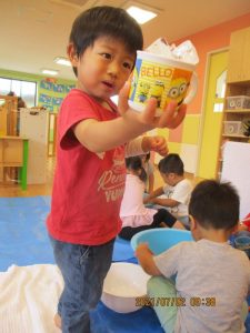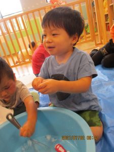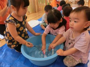 入れたり出したり混ぜてみたり、子どもたち思い思いに遊ぶ姿が見られましたよ