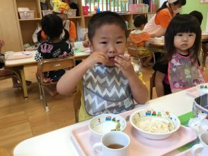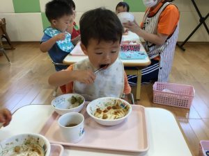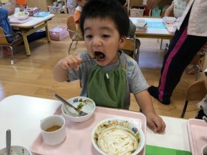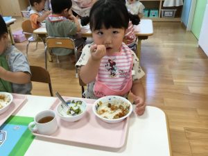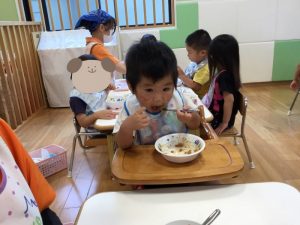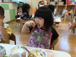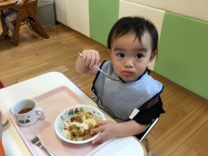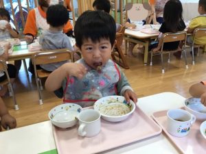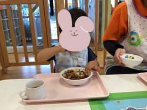 最後に美味しそうに給食を食べている姿をどうぞ?