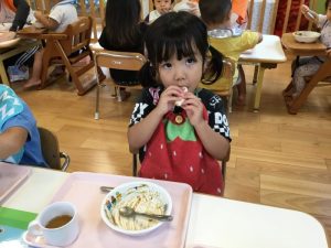 絵本を通して知らせたり、また大きな口で食べる姿は