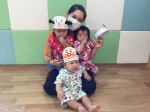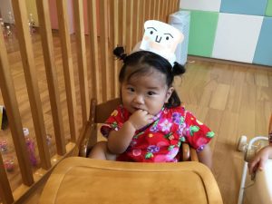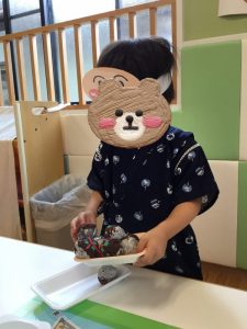 かわいいお面をつけてクラスで集合写真を撮りましたよ☺️