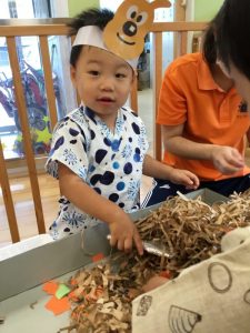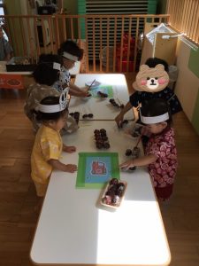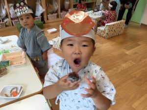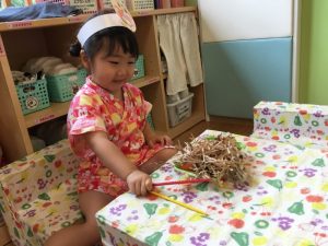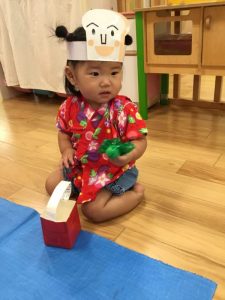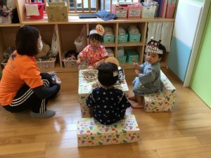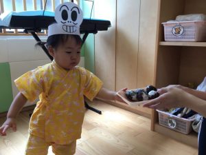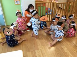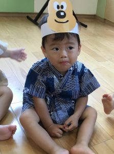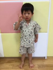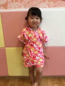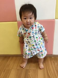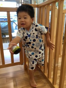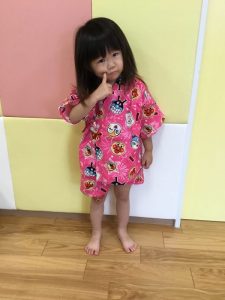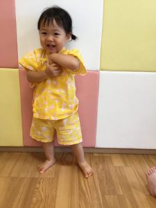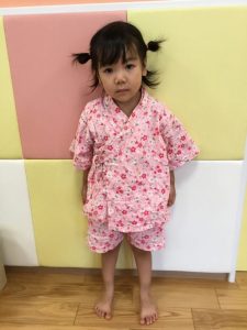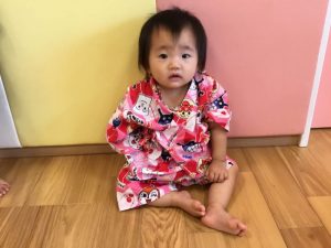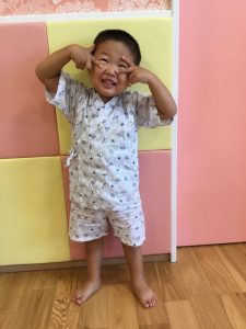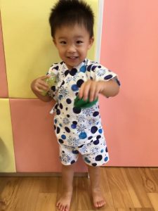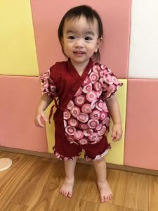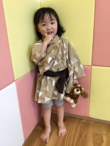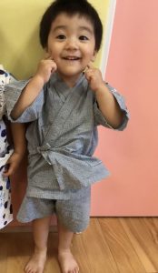登園すると保育者のところまで来て甚平姿を見せにきてくれたり