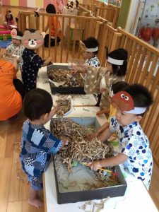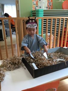 まずは、自分たちでお面を選んで説明を聞きます✨
