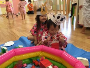 お友だちの甚平姿を見て「かわいいー❤️」と言ったり、