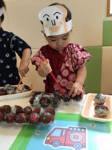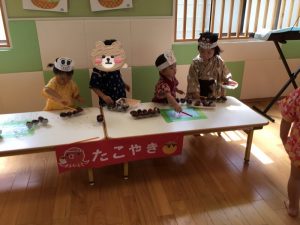 今回の夏祭りでは、焼きそば屋さん、たこ焼き屋さん、