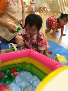 次は魚釣り?と、ボール転がしのコーナーの様子です?