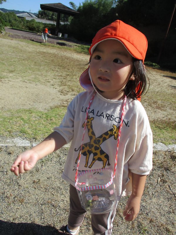ペットボトルで作ったお散歩バックをもって出発です!!