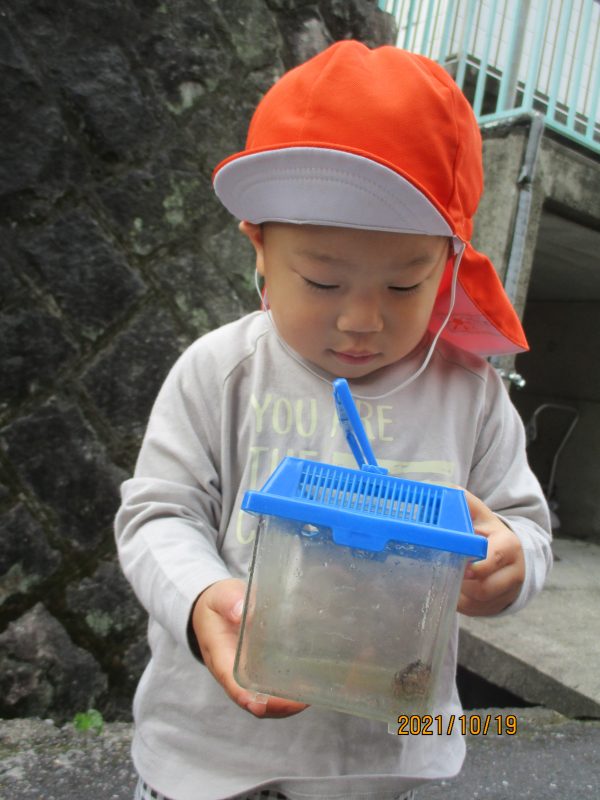 釣れた?を飼育ケースに入れてご機嫌な?ぐみさん