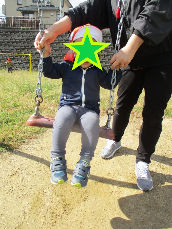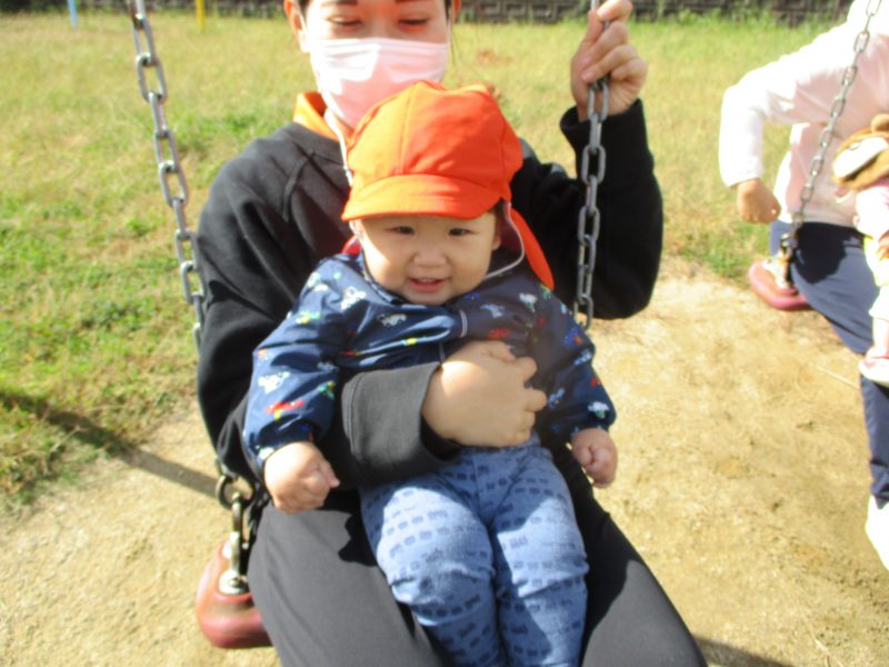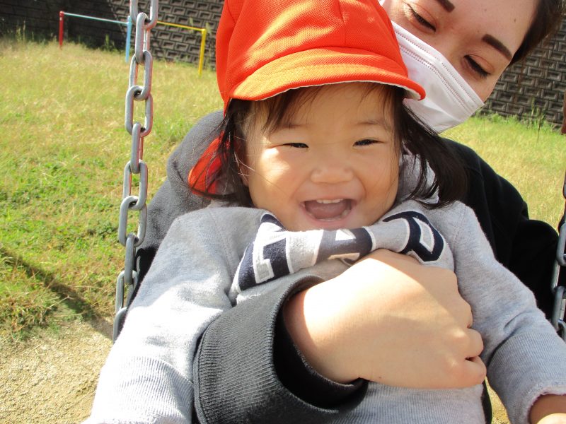 ゆっくりと揺らしてもらいご機嫌な様子です
