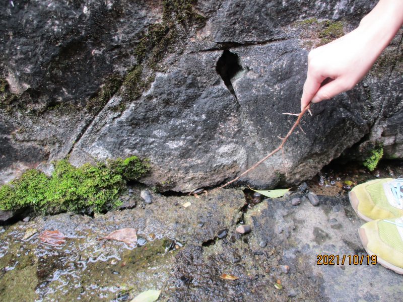 少し柔らかめの枝を使って?が出てくるのを待っていると