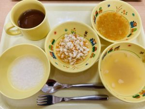 粥 味噌汁   豆腐と野菜のだし煮 ブロッコリーのやわらか煮